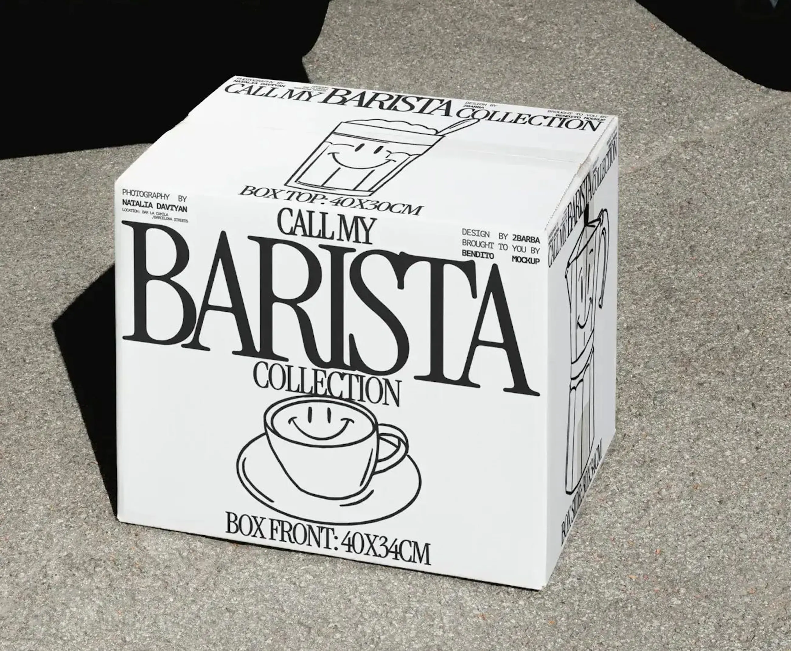 A coleção de mockups “Call my barista” (Bendito Mockup) tem seu próprio branding.
