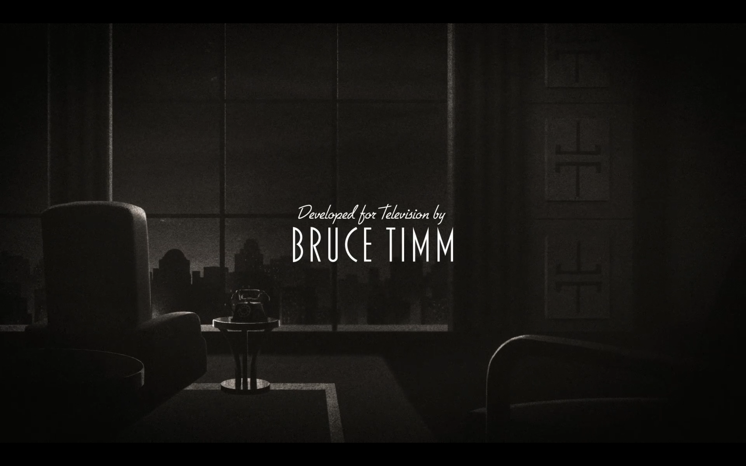 Letras pontudas, contraste de largura e eixos deslocados: já sabe do que estamos falando, não é? Essa abertura também reforça o caráter noir na narrativa, embora ela tenha um traço diferente dos próprios episódios, sendo granulada e inteiramente em preto e branco.