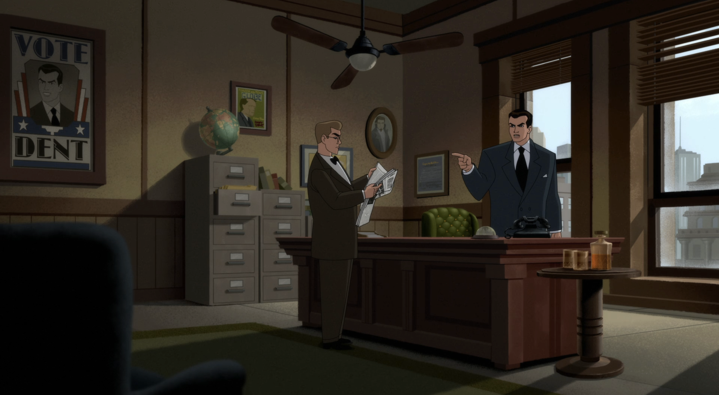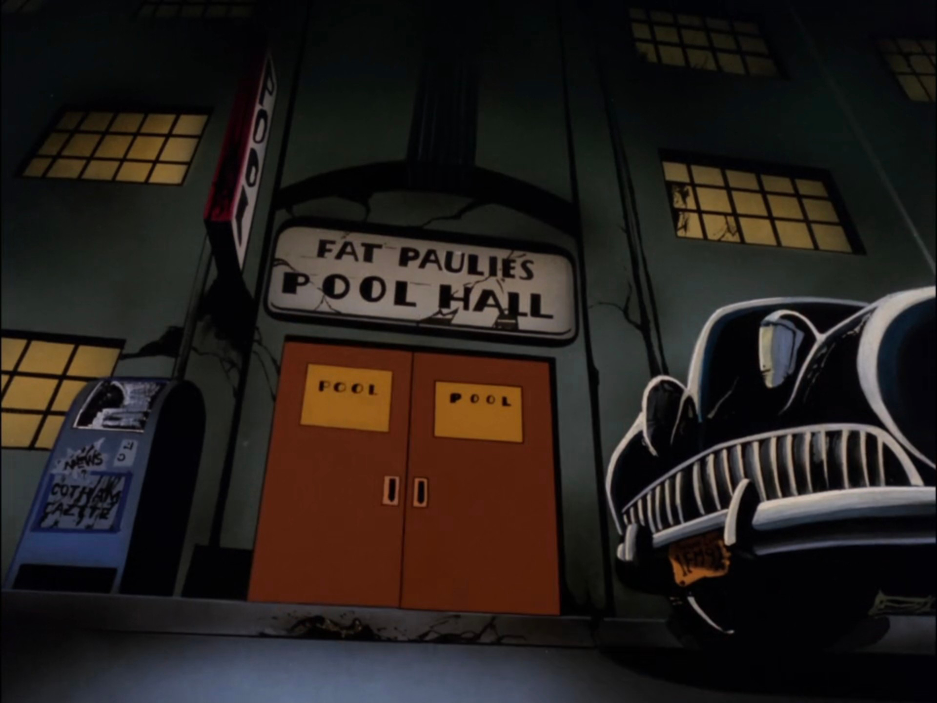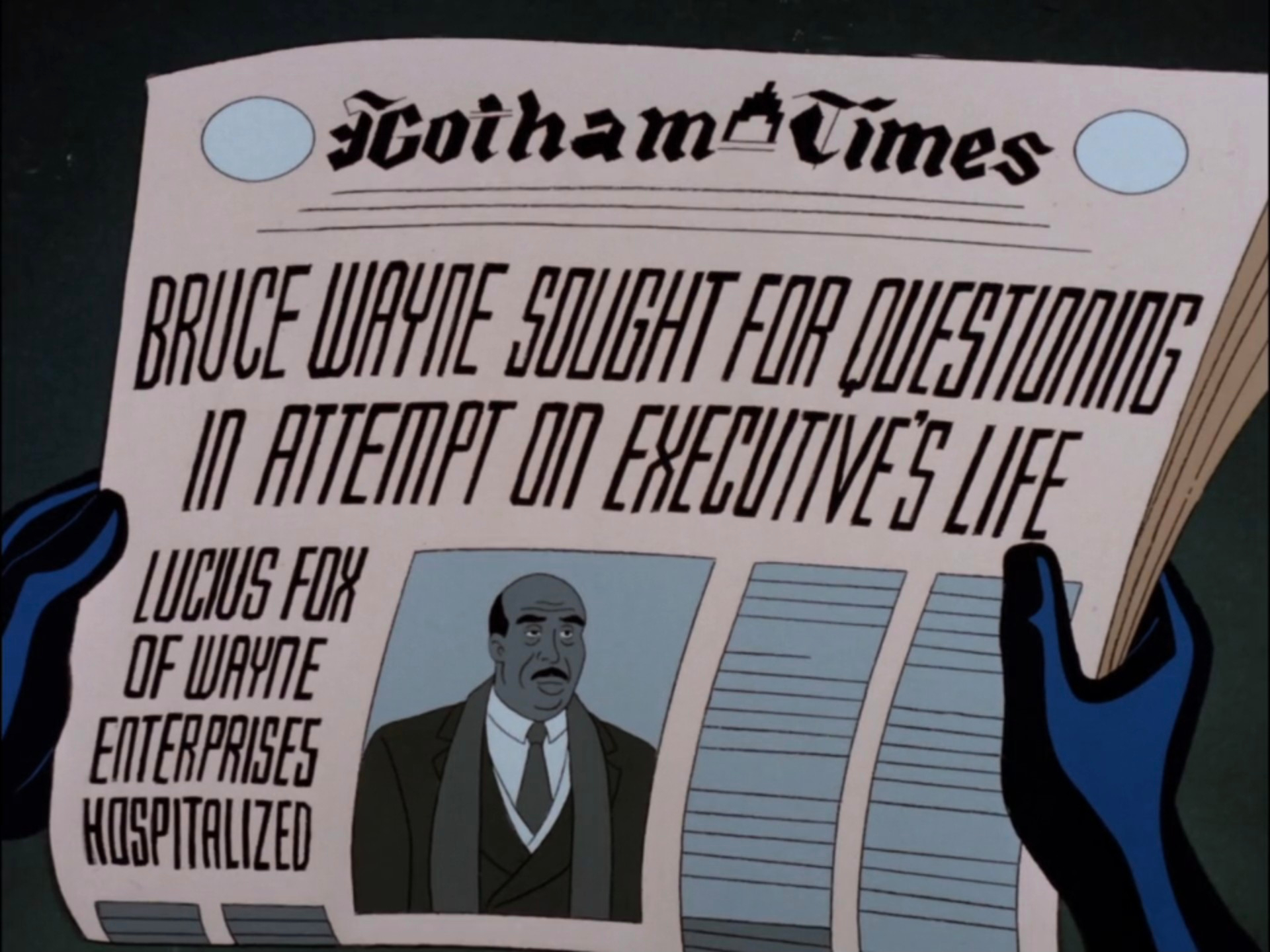 Quem disse que não teria fonte gótica n’A Série Animada? O Gotham Times não aderiu à moda Art Déco.