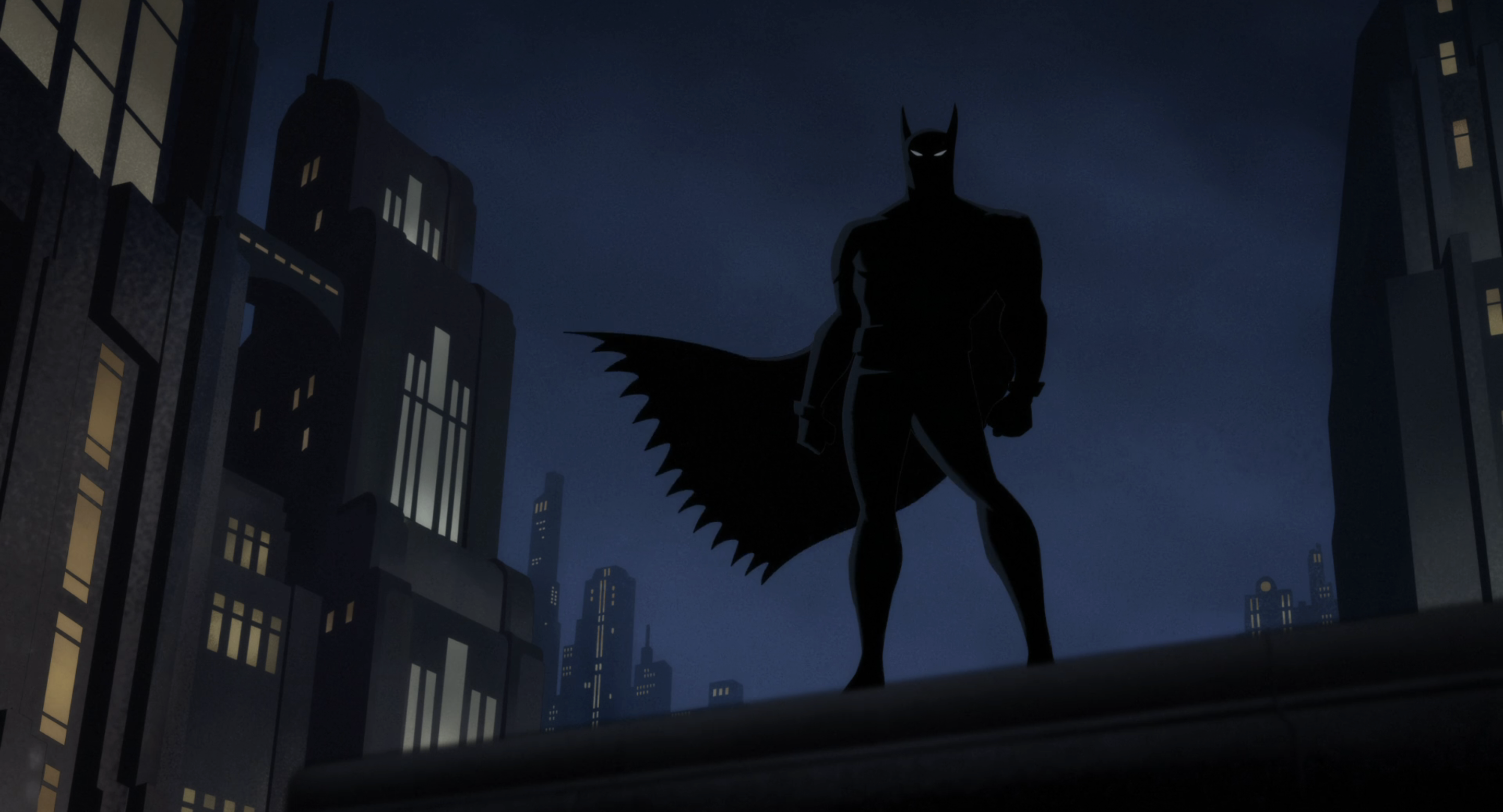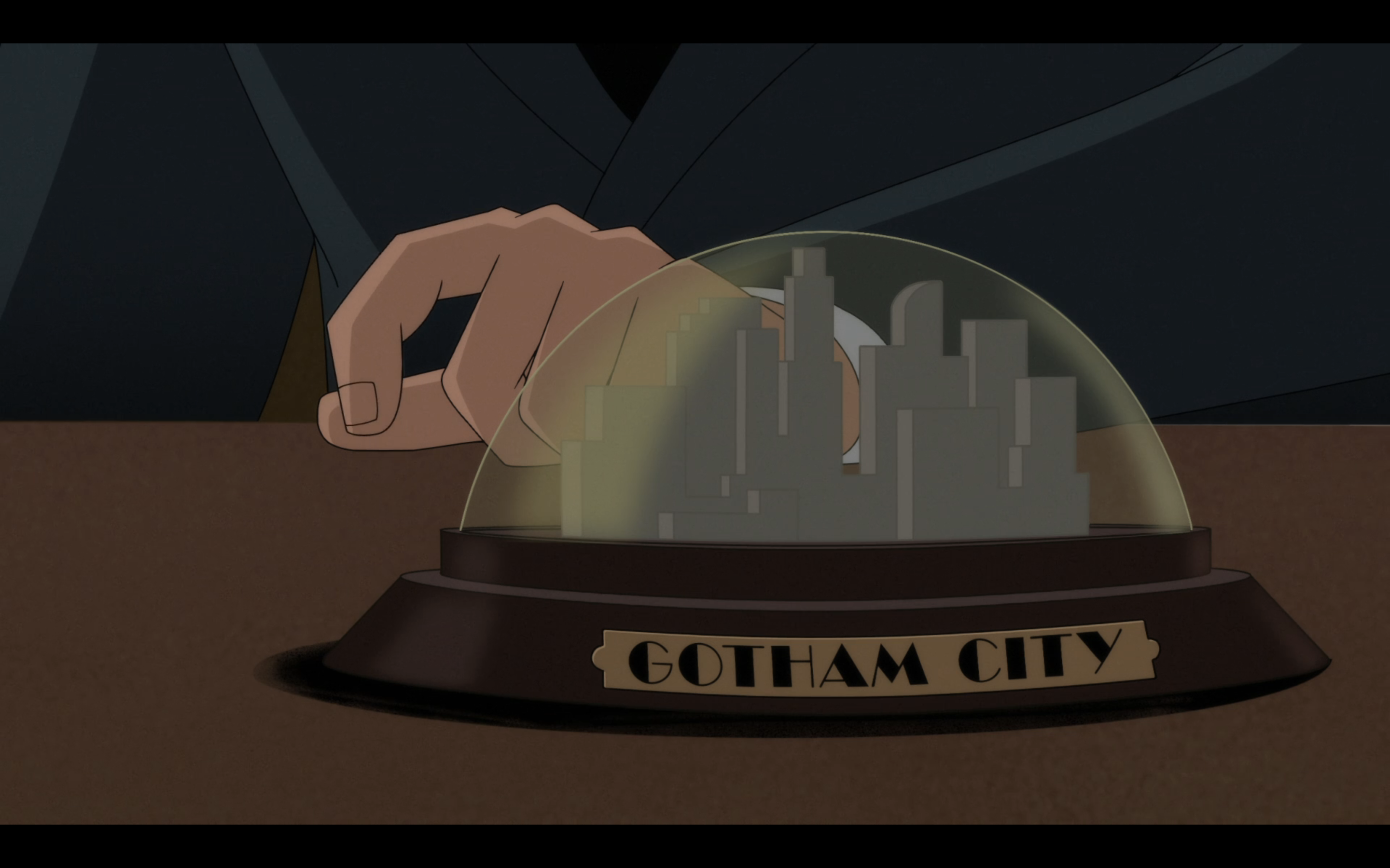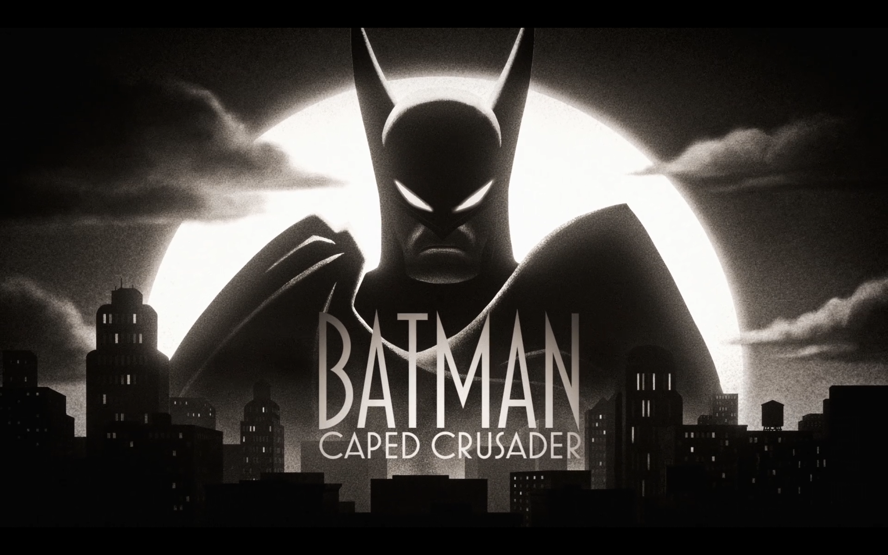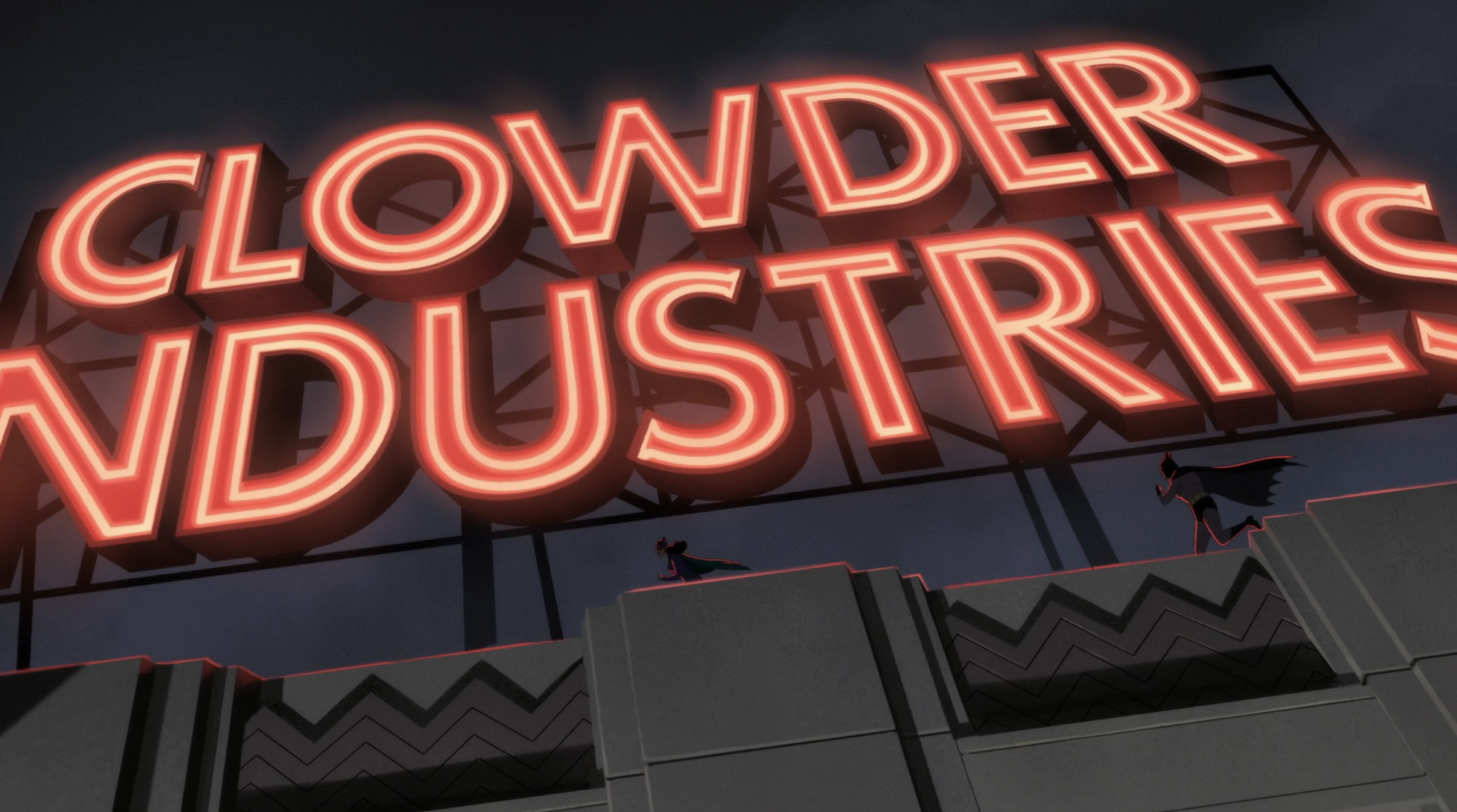 A nova série do Batman no Prime Video parte basicamente da mesma ideia d’A Série Animada: uma ambientação “Dark Déco” no anos 1940, mas cheia de tecnologia. Na abertura e nos créditos, essa referência é deixada ainda mais óbvia do que na série anterior, pois uma fonte Art Déco aparece a todo momento (quando n’A Série Animada, apenas alguns episódios tinham esse recurso na abertura, como vimos antes).