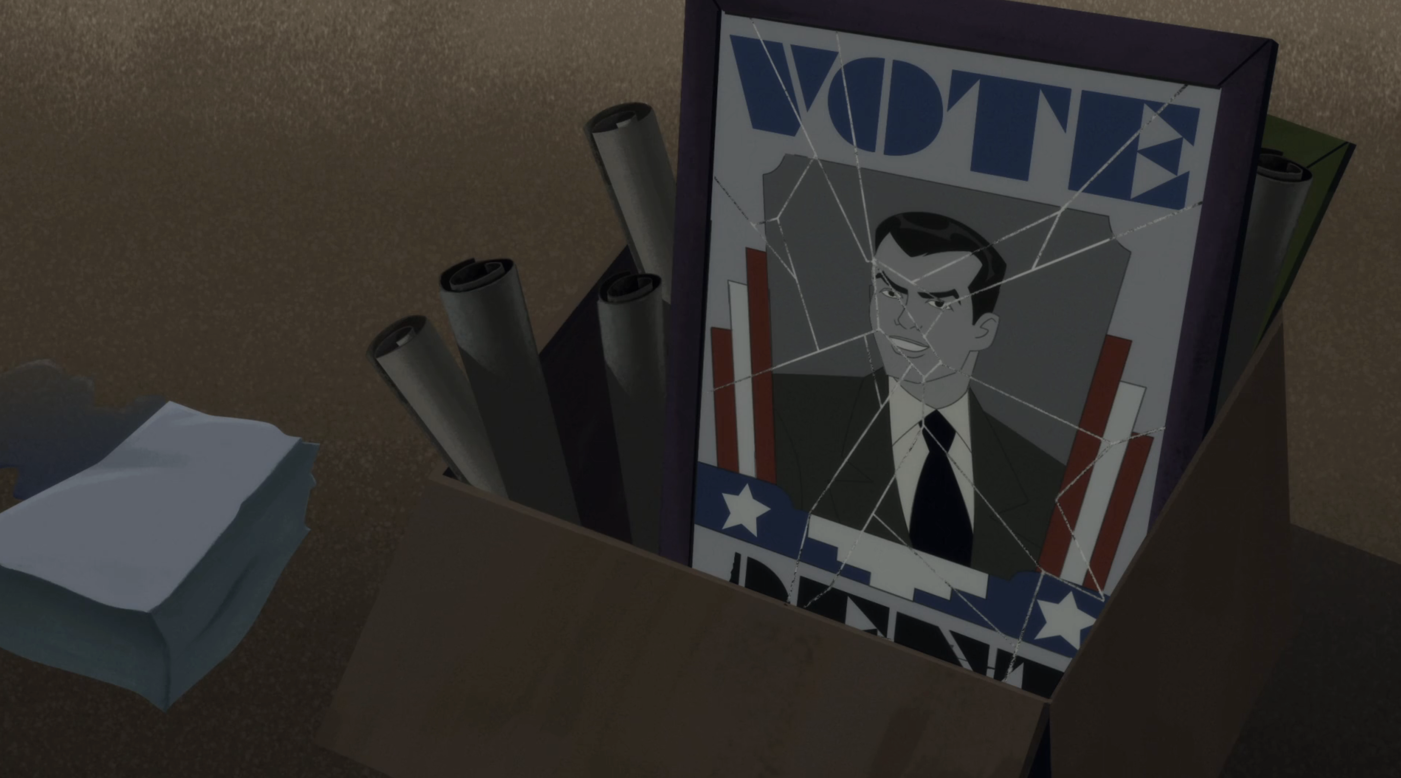 A campanha do Harvey Dent (o Duas-Caras) para a prefeitura aparentemente tem bons designers e um logo variável!