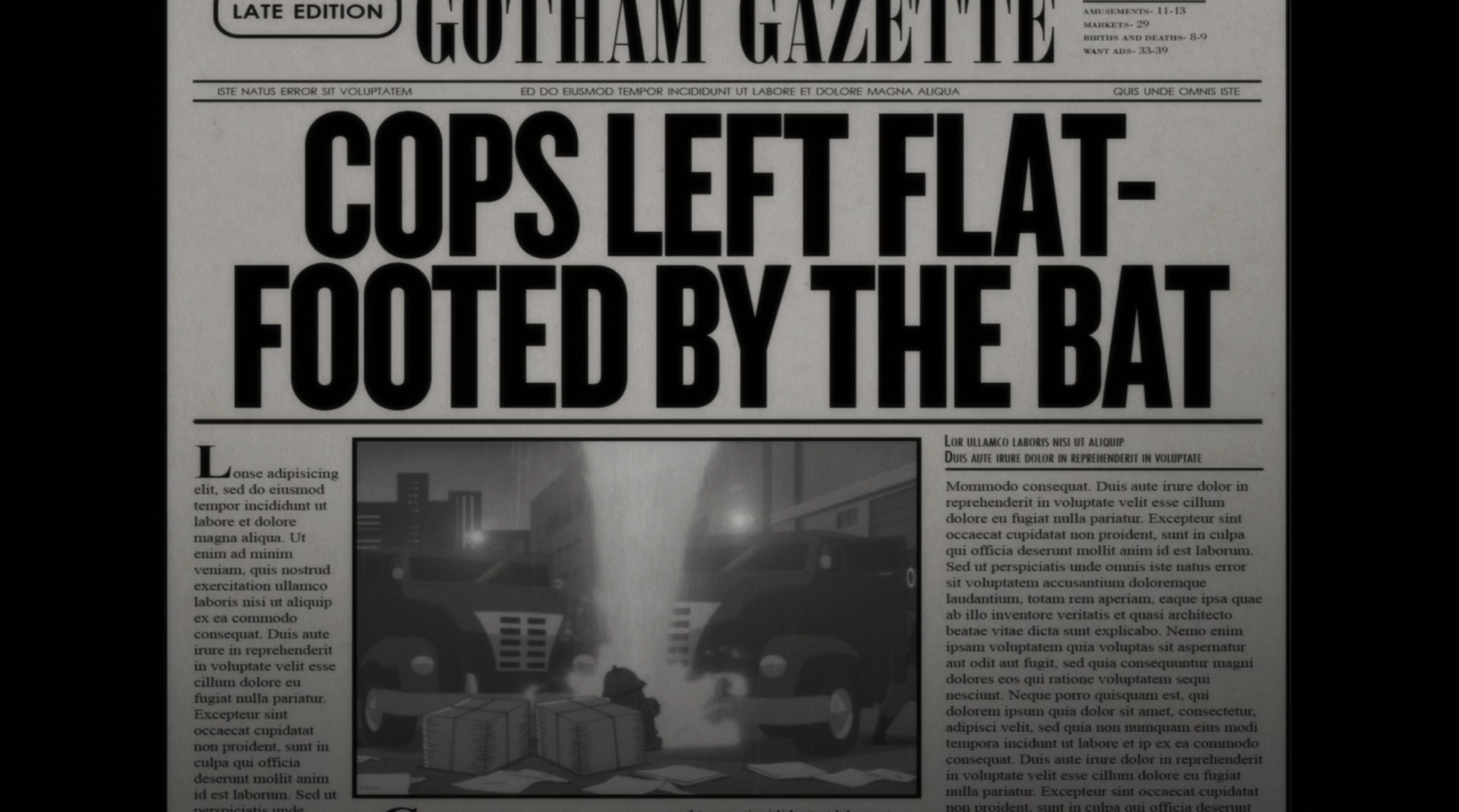 Bom, como nem tudo são flores, depois da nossa longa incursão no universo do Batman, infelizmente temos que encerrar com uma nota triste: sim, o jornal de Gotham City usa texto de Lorem Ipsum.