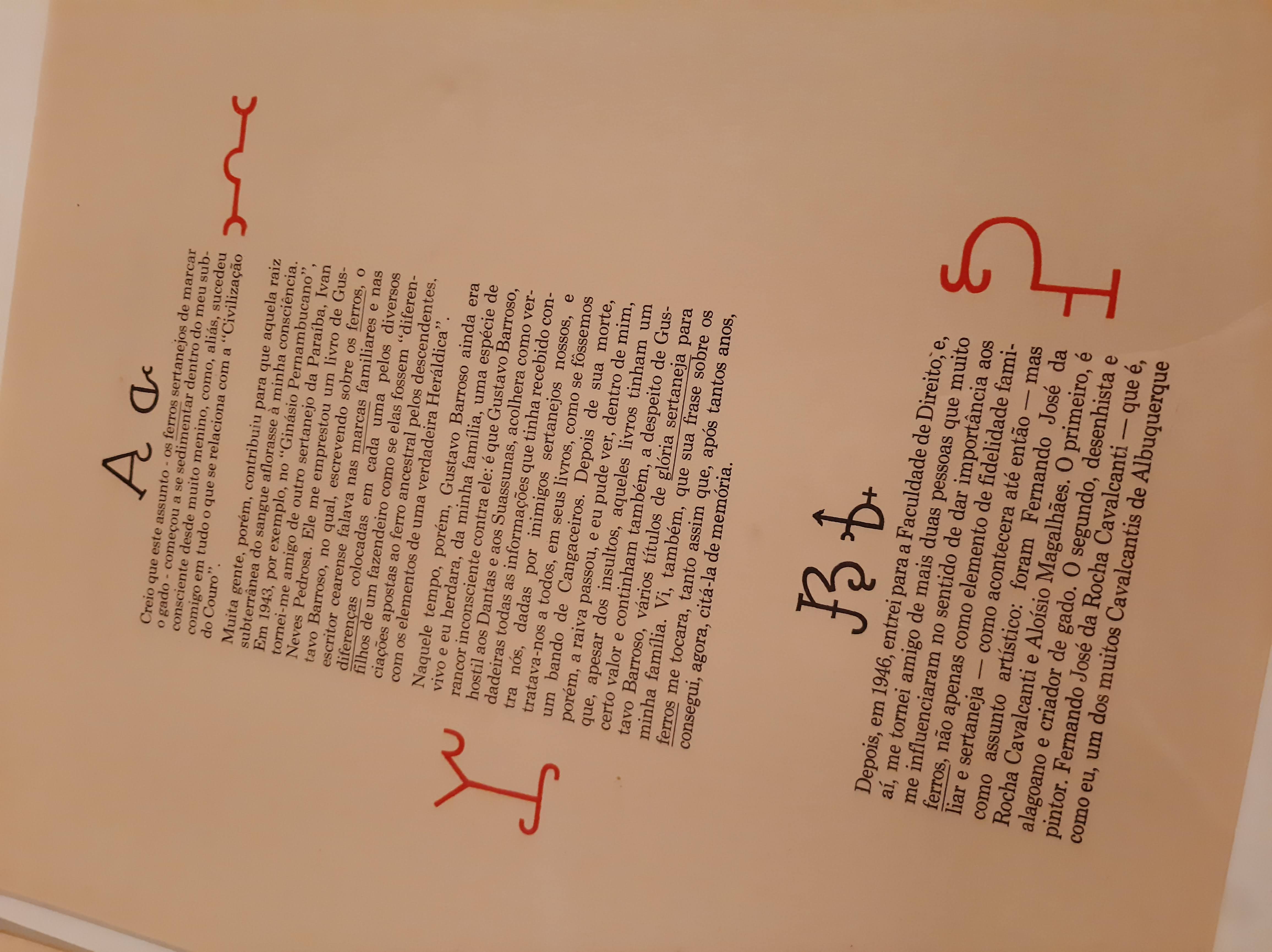 Página interna do livro “Ferros do Cariri — Uma heráldica sertaneja” — Foto tirada na exposição“Movimento Armorial — 50 anos”, no CCBB-RJ (2022, arquivo pessoal)