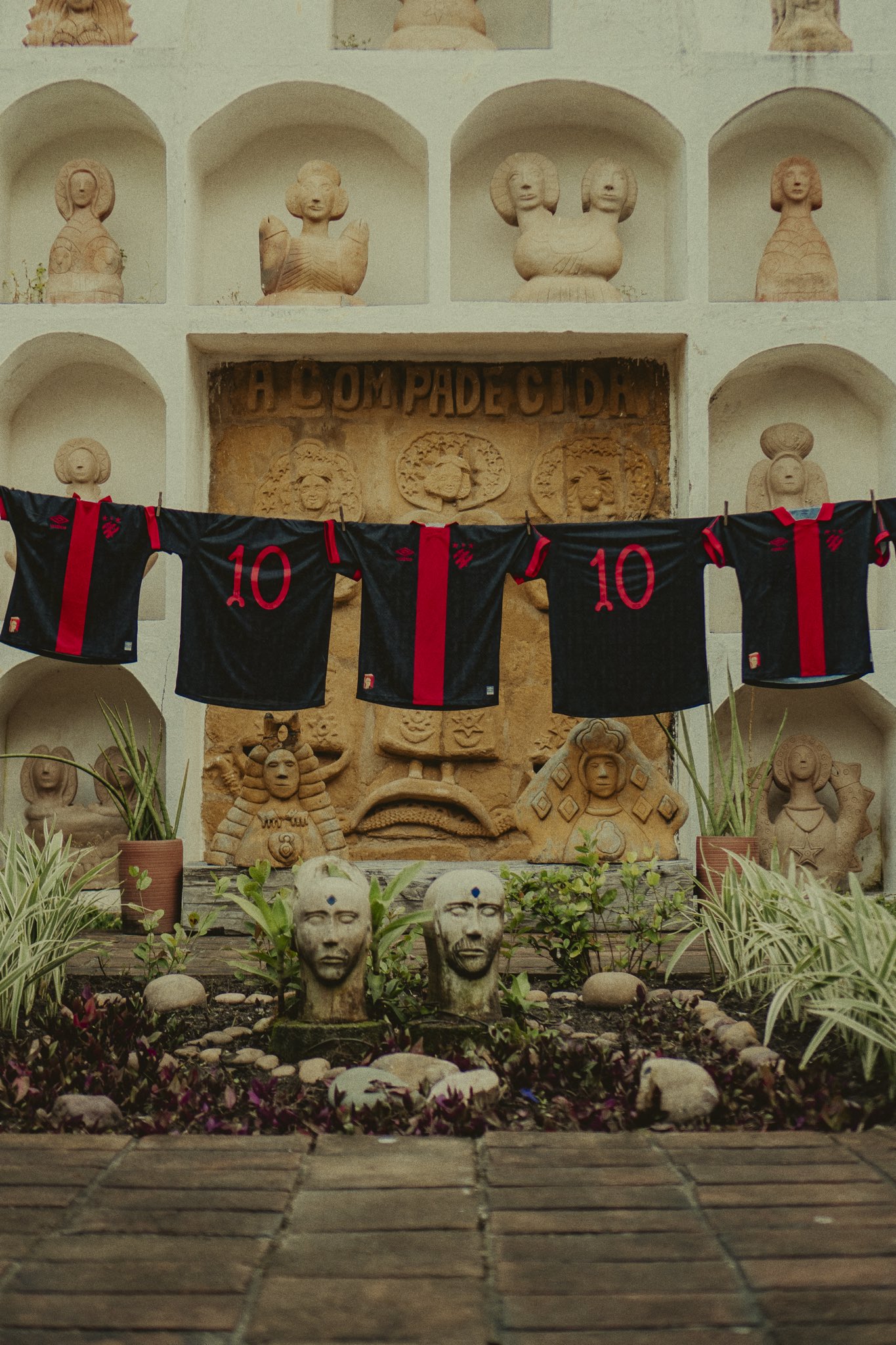 O conceito foi tão abraçado nesse lançamento, que até o patrocinador master do Sport modificou seu logotipo para ser aplicado na blusa, adotando também a tipografia armorial (e a gente sabe que grandes empresas não costumam se empolgar muito com alterações nos seus logos).