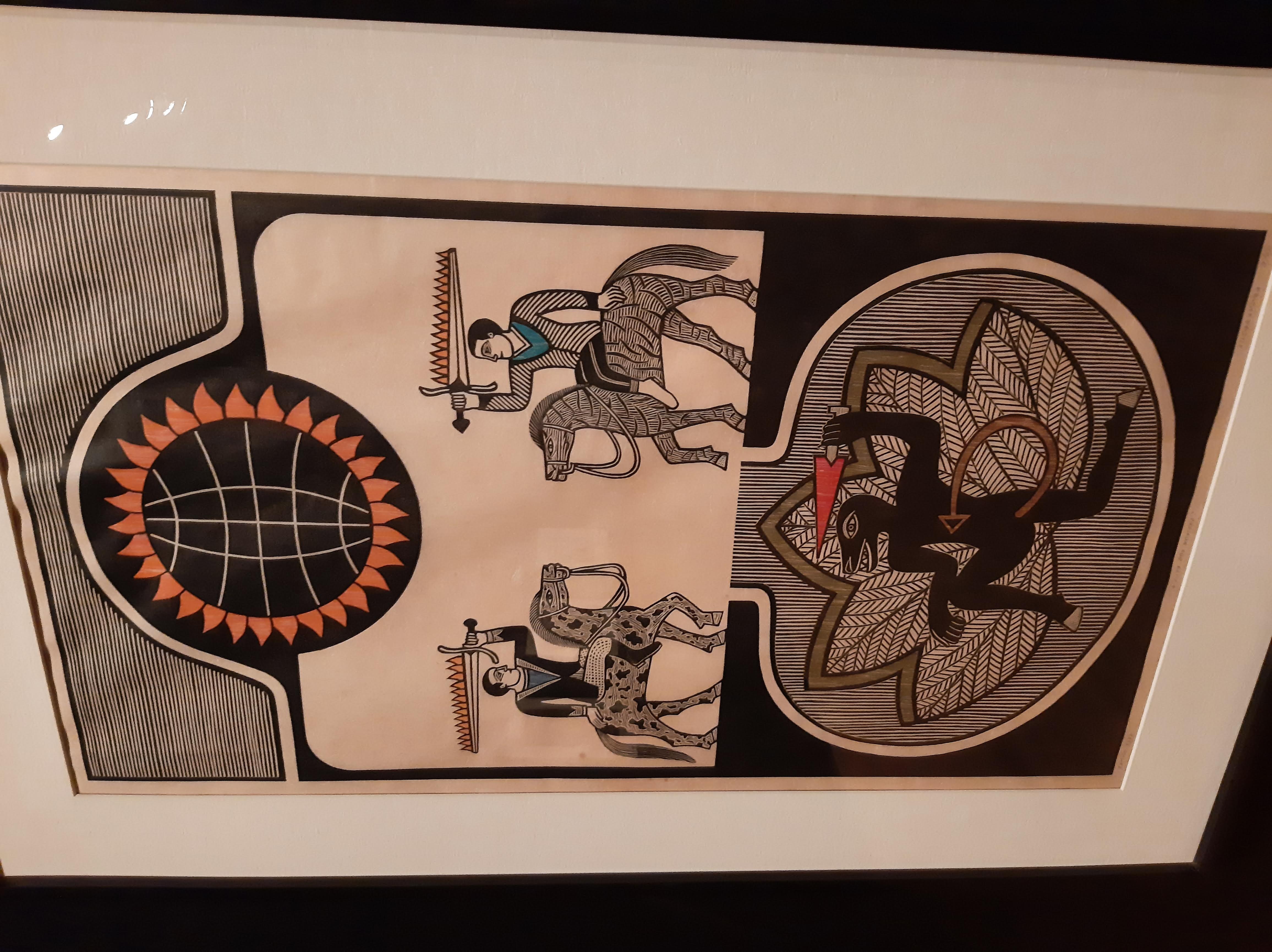 Seres mitológicos e cavaleiros são parte universo armorial — Foto tirada na exposição“Movimento Armorial — 50 anos”, no CCBB-RJ (2022, arquivo pessoal)