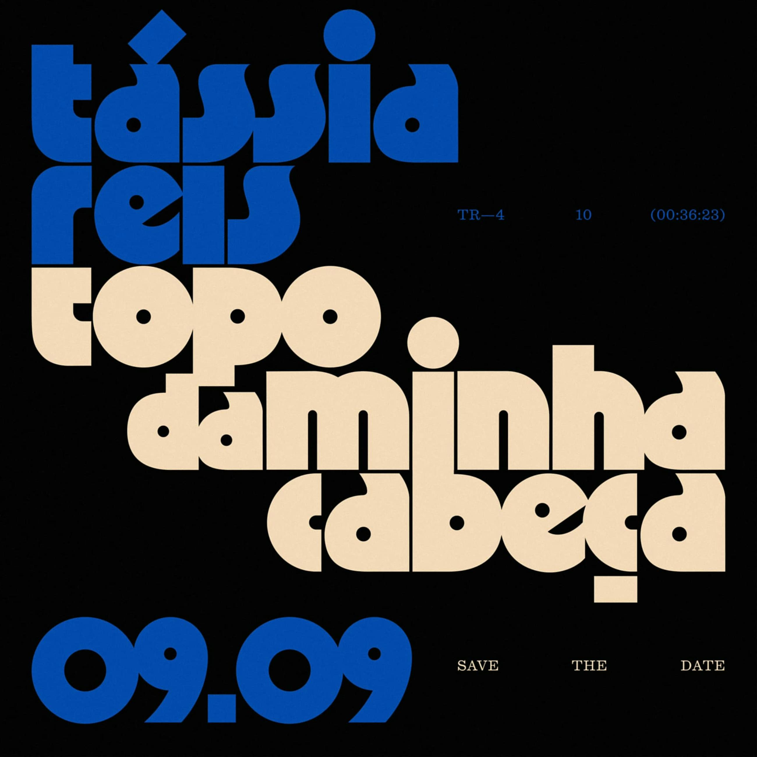 Provavelmente, nosso uso favorito da contraforma de bolinha em 2024 são esses letterings maravilhosos que o Leandro Assis fez para o novo álbum da Tássia Reis, “Topo da minha cabeça”. Aqui o Leandro encontrou o cálculo ideal para unir geometria com fluidez. Veja que a estrutura das letras não é tão distante da Megazoid ou Ozik, que comentamos lá em cima, mas aqui as retas não são tão marcadas.