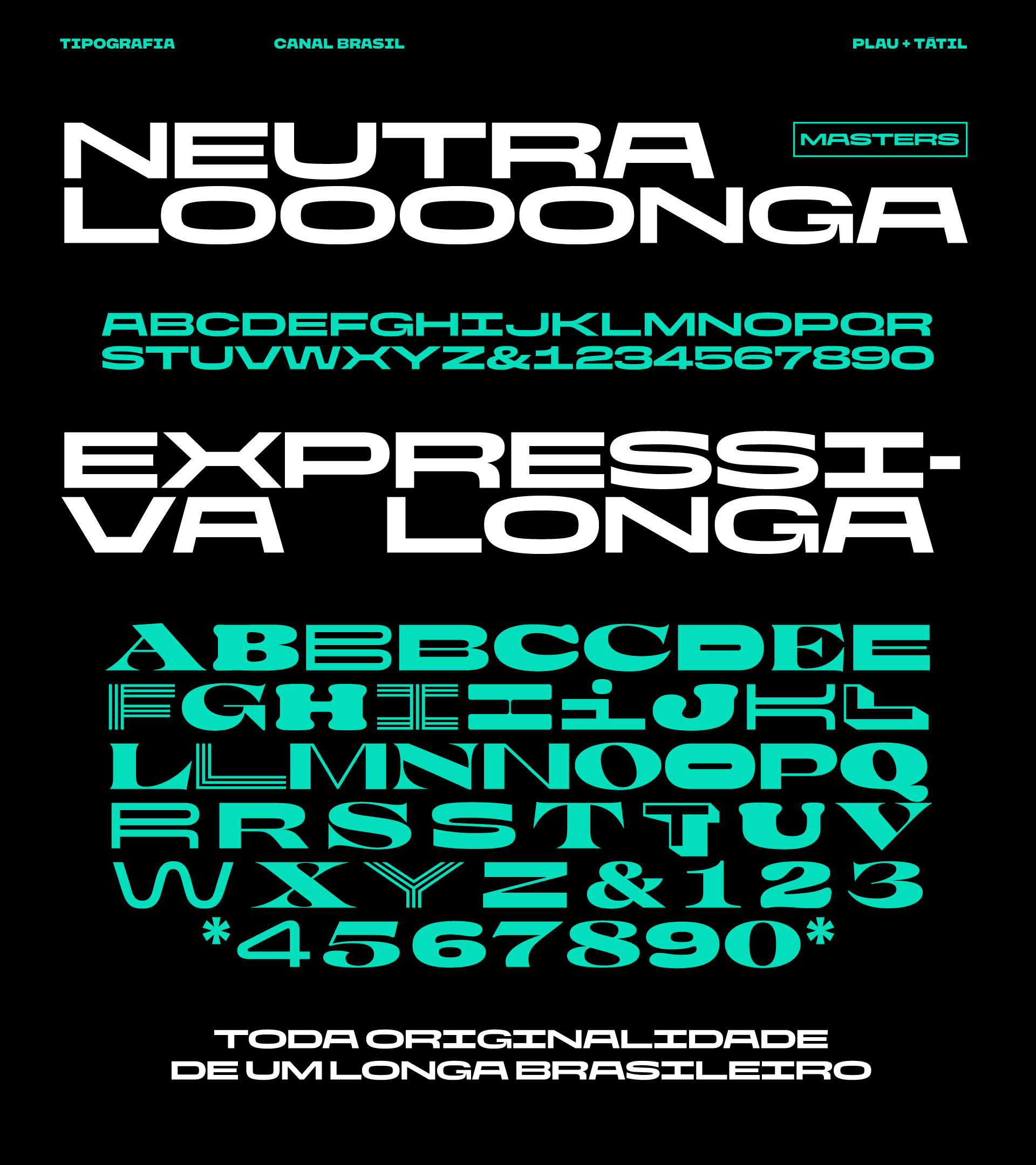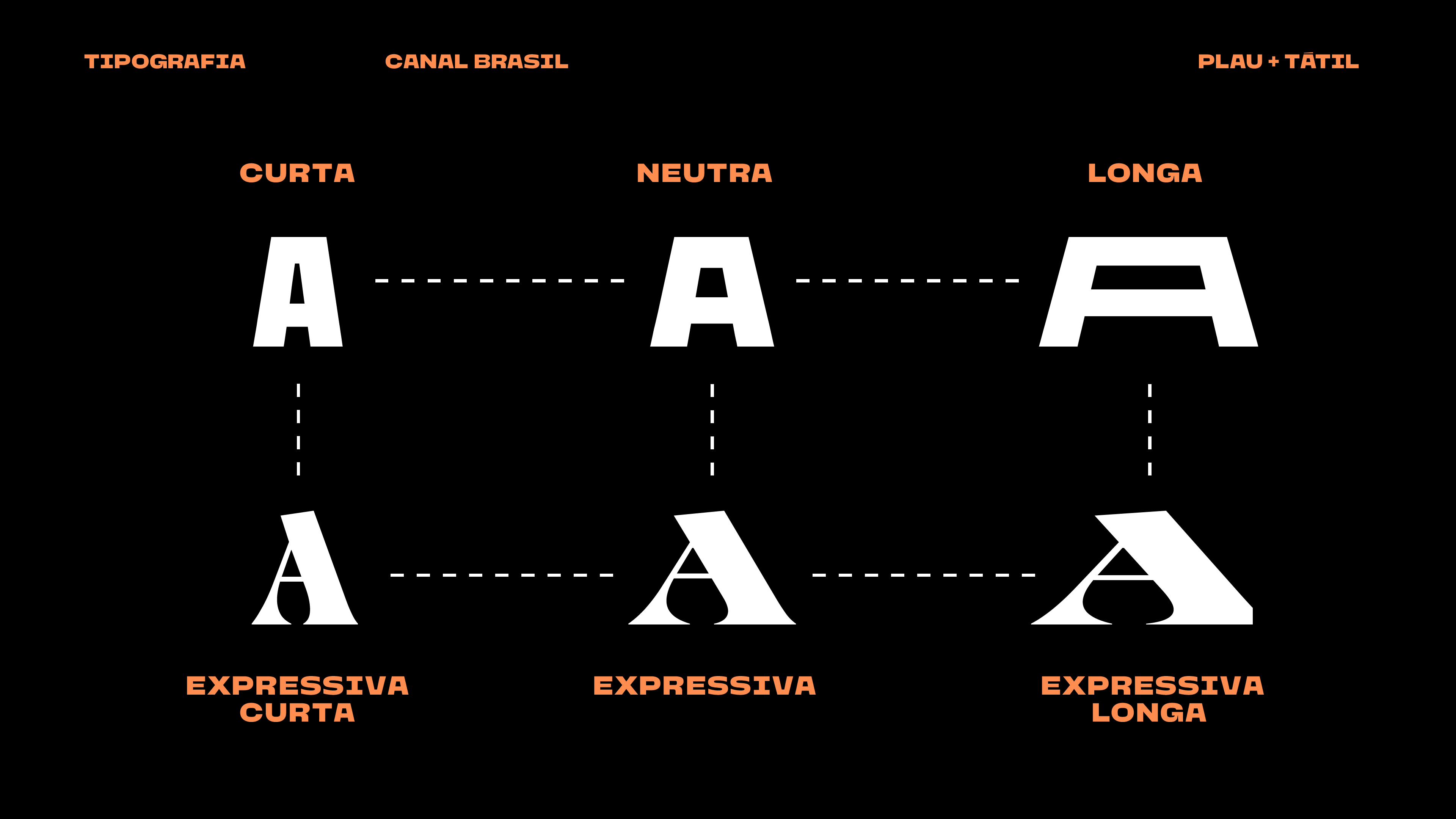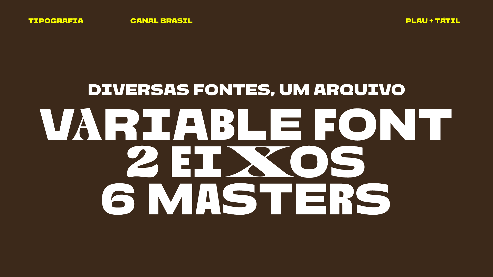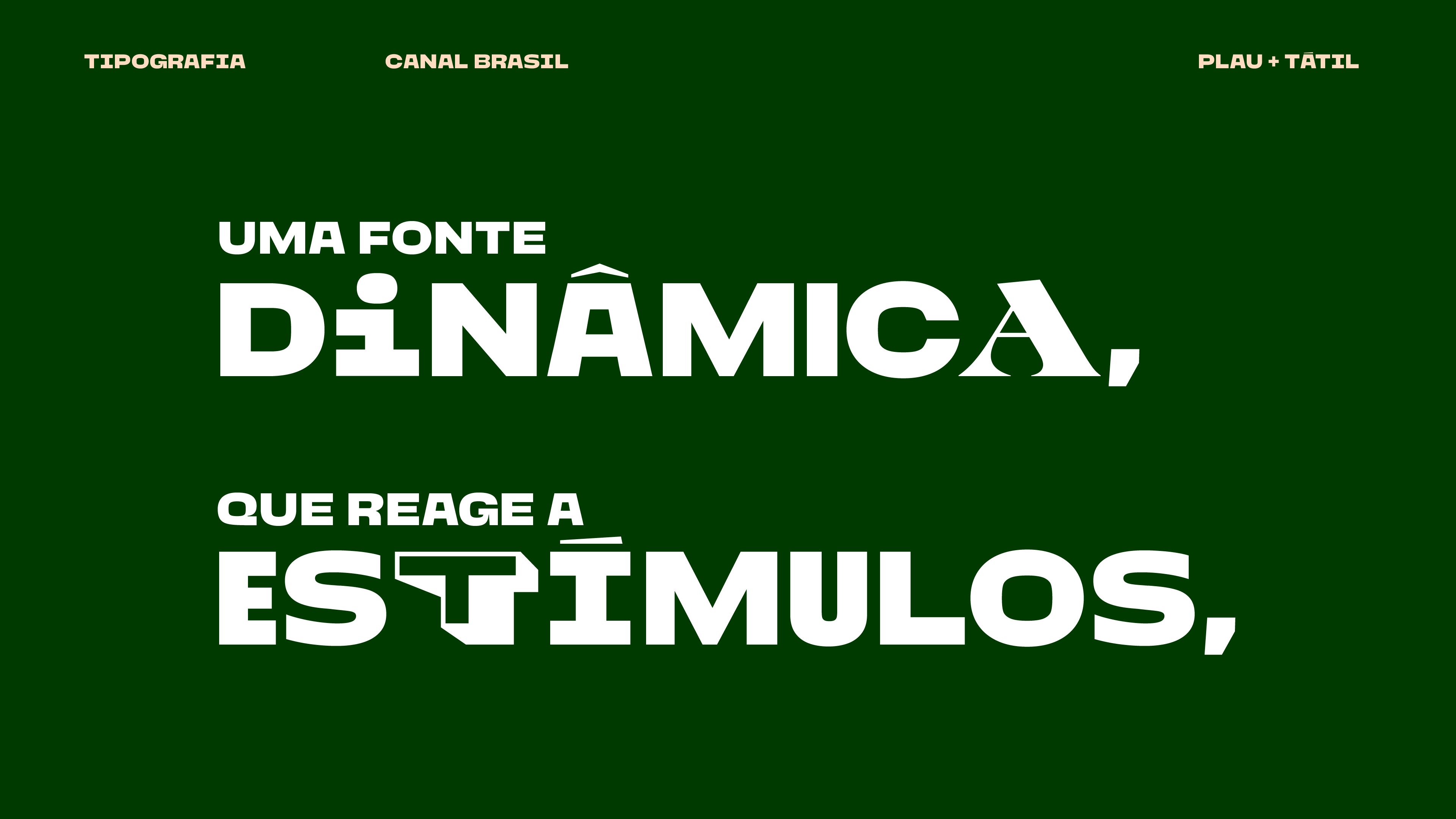 Under Tátil’s creative direction and materialised by Plau’s typographic expertise, Canal Brasil VF is a display, all caps variable font with two axes: width & expression.
